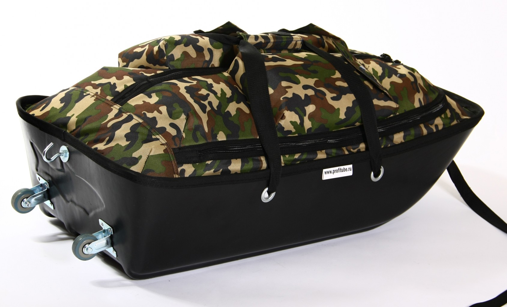 Полезный объем 150 литров. Дно - пластик, верх - D 420 ПВХ или D 600. На нижней стенке имеются усиленные колеса для перевозки по поверхностям без снега (по аналогии с чемоданом
